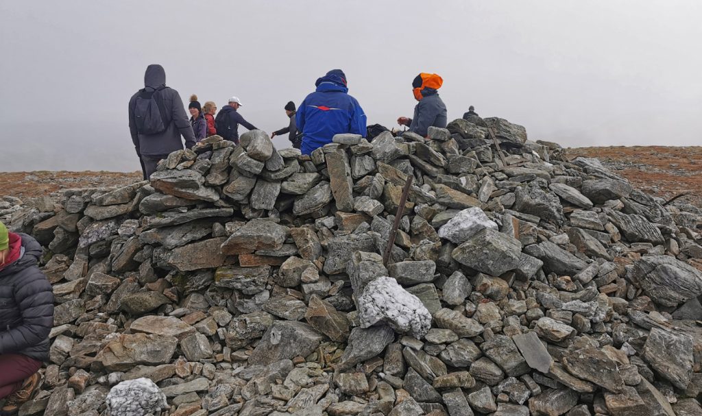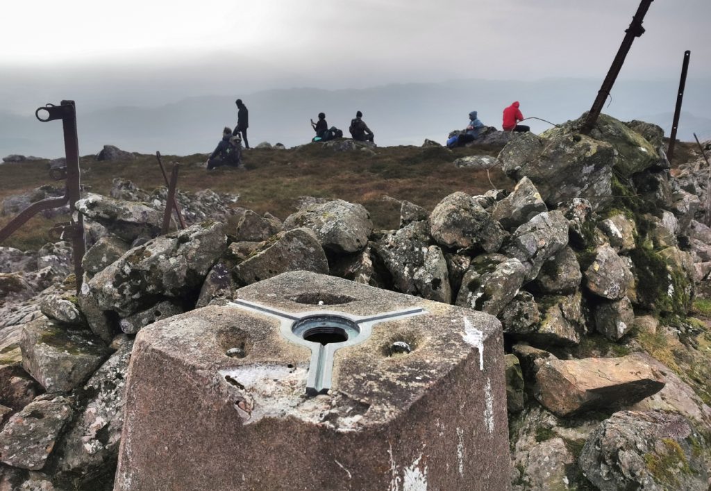 We soon reached the top which has a bit of a shelter but was very busy with “alltrails n trainers” masses, some barely equipped for the conditions. Being an easy munro within reach of the central belt, one forgets when around the Cairngorms how busy hills can be near cities, and the general level of naivety that is seen there. It was pretty chilly so we were glad we’d eaten earlier and made onward after a short break.