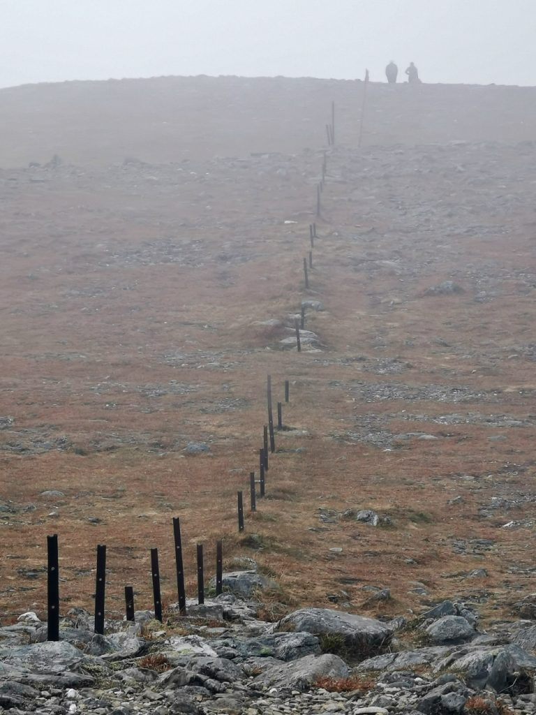 Heading south west a row of old posts make for easy navigation