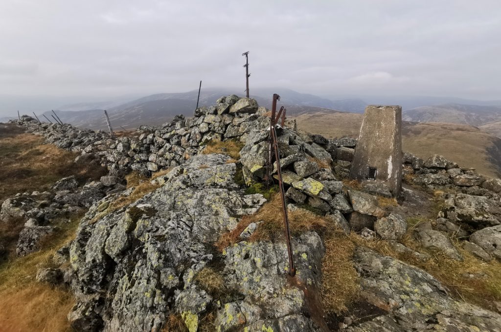 A jumble of rocks, metal posts and a trig – Carn Chois
