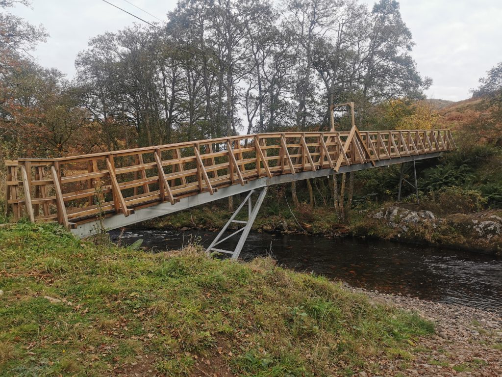 A footbridge further down the River Lednock took us to the road