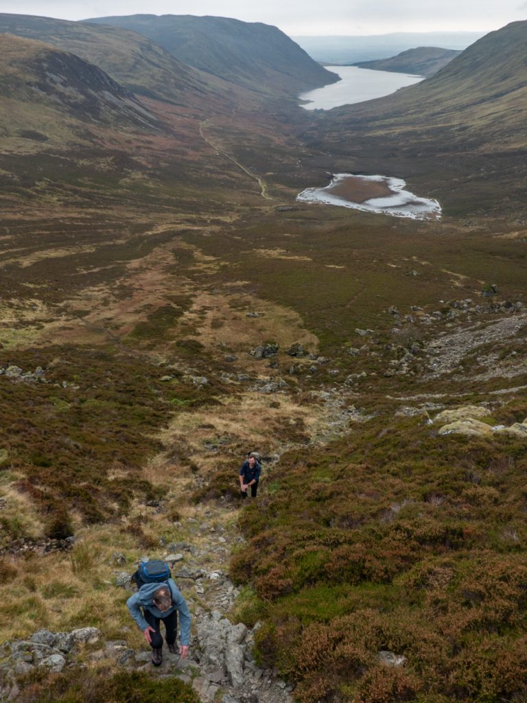 Climbing higher a better view of the lochan and loch