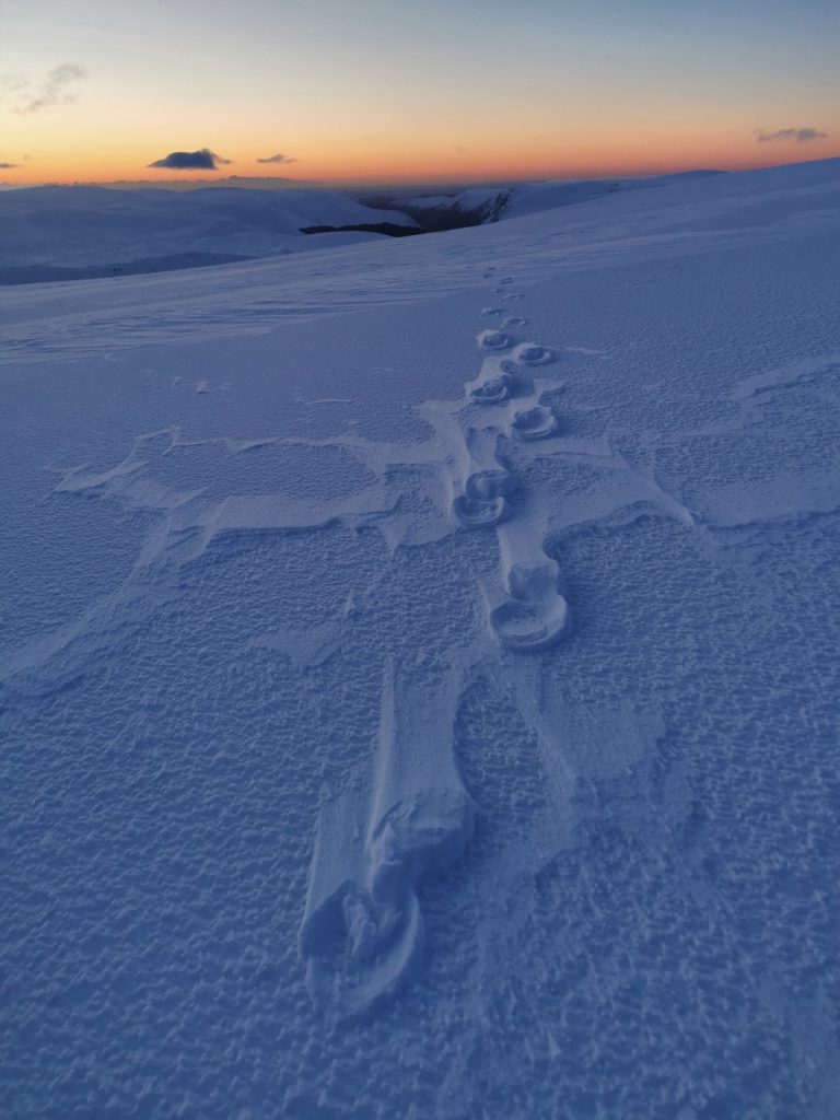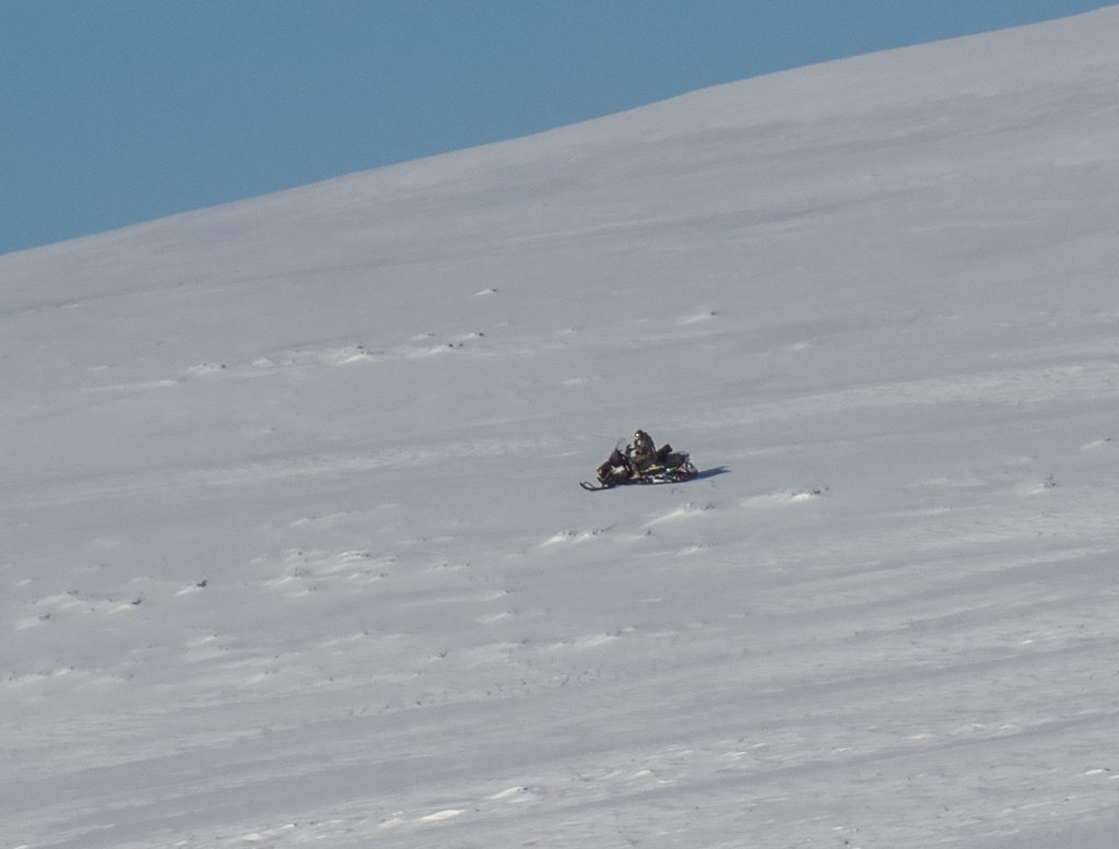 Having breakfast a buzzing sound increased and caught my attention – a very unlikely sight in such a remote place of a snowmobile. Not sure if this was an estate worker, or some yahoo out where they shouldn’t be on motorised transport (apparently 3 more sighted elsewhere)